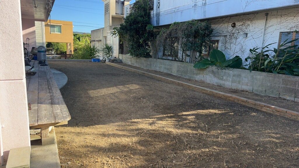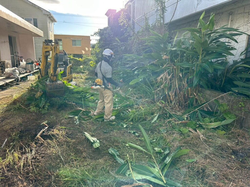 草刈り及び表土剥ぎ取り状況